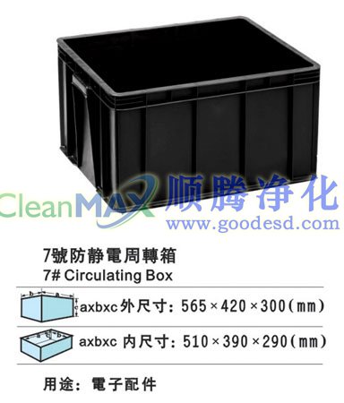 無毒、無味、防潮、耐腐蝕、重量輕、耐用、可堆疊、外觀華麗、顏色為黑色、純正等特點。 防靜電周轉箱,可以有效的釋放物體表面積累的靜電荷,使其不會產生電荷積聚和高電位差;具有堅韌耐磨,防潮防腐,隔熱防震,靜電,大量用于電子器件及產品生產過程的周轉裝載、包裝、貯存以及運輸。并具備抗折,抗老化,承載強度大,拉伸、壓縮、撕裂、溫度高、做成包裝箱式周轉箱既可用于周轉又可用于成品出貨包裝,輕巧、耐用、可堆疊。可根據(jù)用戶需求訂做各種規(guī)格、尺寸,可配蓋,防塵、防靜電,外形美觀大方。一般防靜電周轉箱根據(jù)客戶提供的尺寸設計制作,做到最合理裝載,并可多箱重疊,有效利用廠房空間,增大電子元件、PCB板、無塵車間部件儲存量,節(jié)約生產成本。在靜電被大家越來越被廣大企業(yè)重視的今天,防靜電周轉箱幫助完成電子元件器周轉、存放的通用化、一體化管理,是生產及流通企業(yè)進行現(xiàn)代化生產管理的必備品。根據(jù)用途可分為: