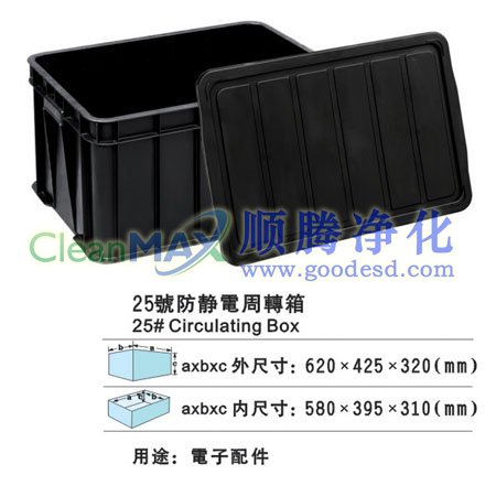 1、防靜電周轉(zhuǎn)箱,   2、導(dǎo)電周轉(zhuǎn)箱,   3、零部件防靜電周轉(zhuǎn)箱,
