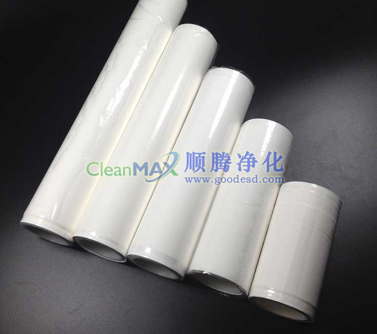 粘塵滾筒基材為聚乙烯膜,設(shè)計(jì)成滾筒狀,粘塵膜上設(shè)有預(yù)裁線,滾筒邊緣有剝離方便剝離;膠體為聚丙烯酸脂膠粘劑,保證無脫膠,配合手柄使用方便;采用PE管圈芯,清潔無污染,保持滾筒不變形;既能很好的清除灰塵,又避免了傳統(tǒng)用具:如抹布、水洗、掃把等對產(chǎn)品及凈化車間造成的二次污染。它主要適用于線路板,PCB,LCD,導(dǎo)光片,電子半導(dǎo)體,軟片精密印刷等表面清潔處理 清潔玻璃面板,壓合鋼板,工作臺(tái)等各種平面。